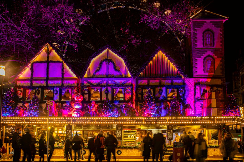 This market sells a variety of holiday themed toys and ornaments, as well a an array of delicious snacks and beverages. The food includes unlimited varieties of sausages, delicious potato cakes and the best tradition of all, Glühwein , a warm, spiced wine that quickly allows you to forget about the cold winter nights spent enjoying the markets.