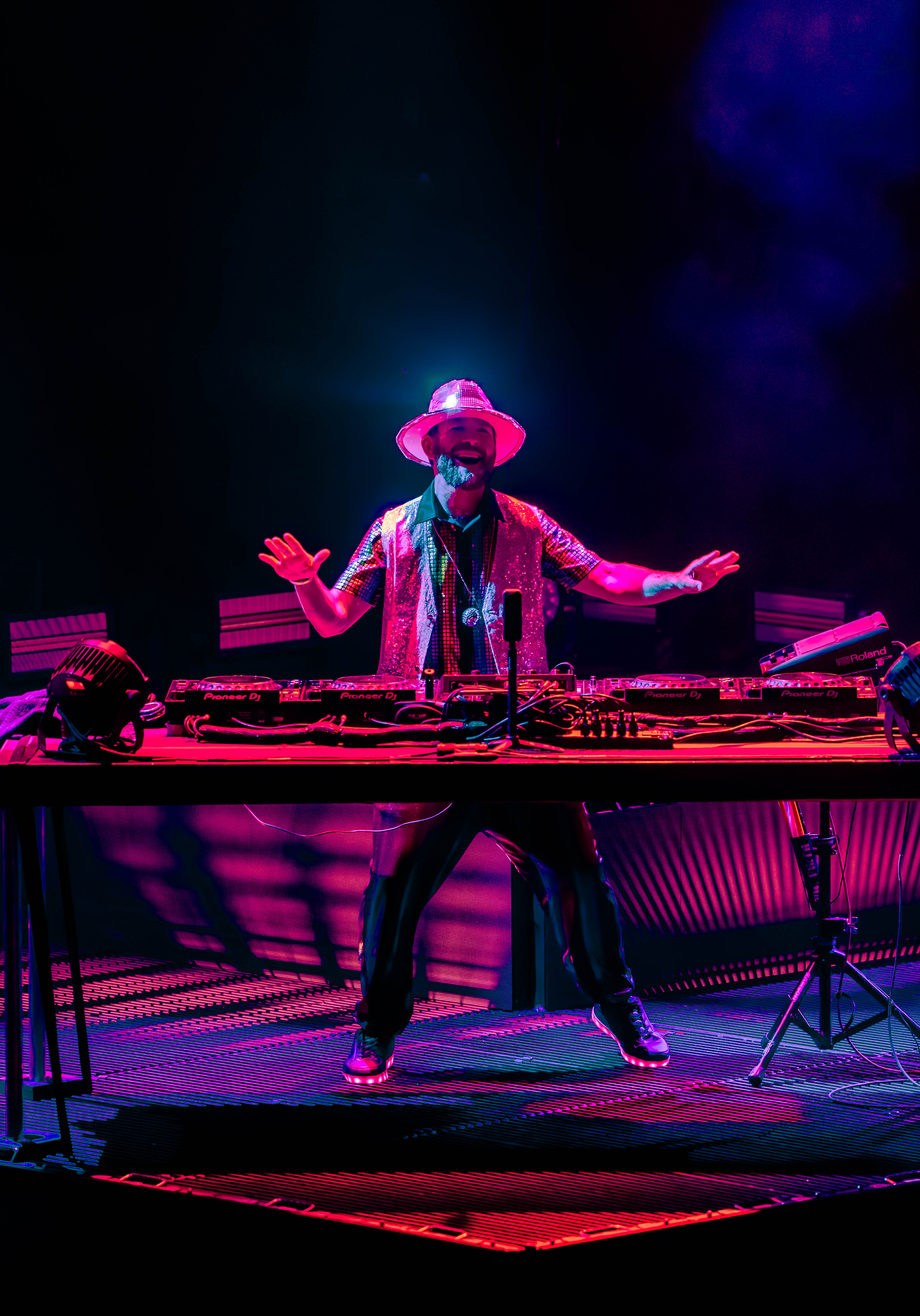 Mark Henrichs, also known as Boogie Lights, is a Denver-based musical artist who wears many hats. As a Producer, DJ, and multi-instrumentalist, Henrichs is the engine that moves the Boogie Lights sound. What started as a solo project in 2016, where Henrichs could fuse his love of drums with electronic music, has since morphed into an even bigger vision. Like the dream team that formed in 1992 to bring home the Olympic Gold, Henrichs has carefully chosen the starting lineup of his live band hybrid, The Boogie Bunch. Tactfully weaving live instrumentation into unique electronic sounds, Boogie Lights is a funk blast that ripples through dimensions. Combining old-school funk basslines and melodic vocals with futuristic house and electronic influences, Boogie Lights and The Boogie Bunch is a must-see live experience.