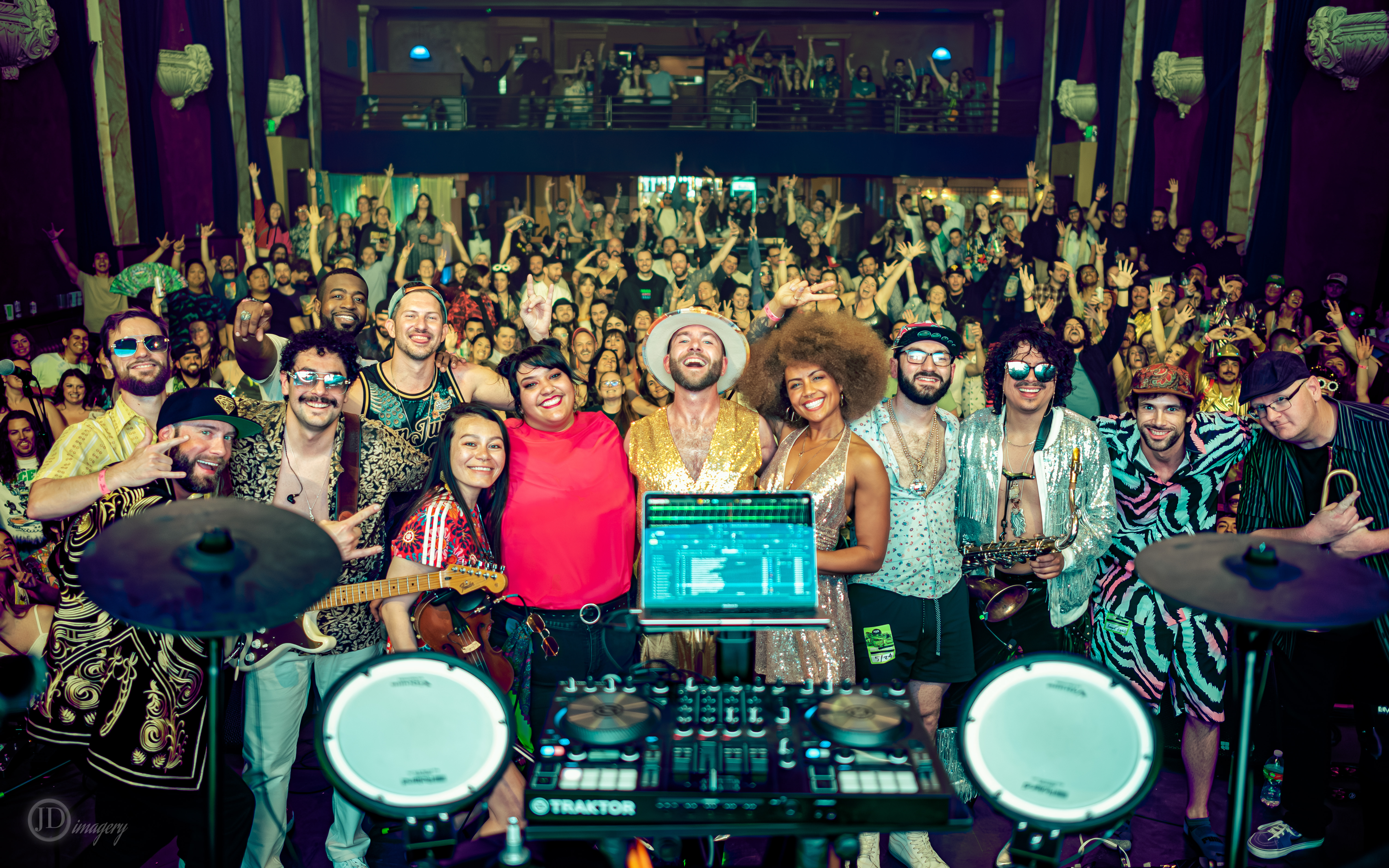 The Boogie Bunch is a collection of talented live musicians. On vocals, you have DZIRAE GOLD, Kara Durante (The Hip Snacks), Lisa Scivolette, and Shawn Dunbar (Hereami). Ty Piña handles the saxophone, and Ricky Feria (The Hip Snacks) is on guitar. Dan Chandonnet (Chando) plays keys, and Danny Colbert assists on the violin. On bass is Ben Suarez (The Hip Snacks), Drums is Zach Zumbo, and Percussion is handled by Joey Tuholski (Pure Colors). The only member who can’t make this show is Deezy Le Phunk, who normally provides vocals.